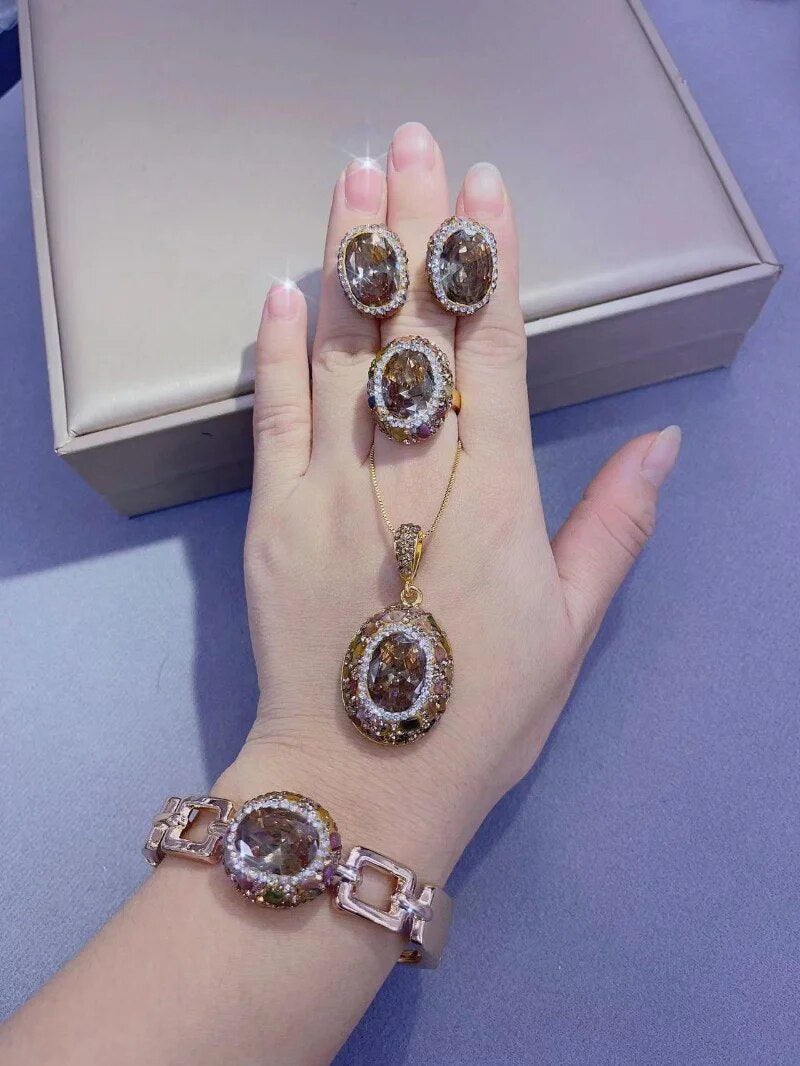 Indulge in the mesmerizing allure of Zultanite ( Incredibly rare mineral that was discovered in Turkey) with our exquisite Jewelry Sets. Crafted with meticulous attention to detail, these sets feature stunning Zultanite stones renowned for their remarkable color-changing properties, capturing the essence of elegance and sophistication. Each piece is delicately adorned with gold plating, enhancing its luxurious appeal, making it a perfect accessory for women who desire to dazzle at parties, weddings, or any special occasion. Whether worn as a statement piece or paired with complementary attire, our Zultanite Jewelry Sets are an enchanting gift choice that embodies timeless beauty and grace, elevating any ensemble with their radiant charm.