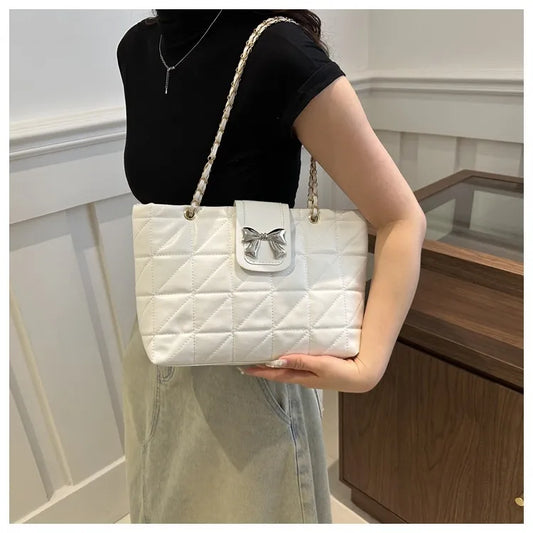 Soft Rhombus PU Chain Tote Bag β Large Capacity Shoulder Handbag for Women